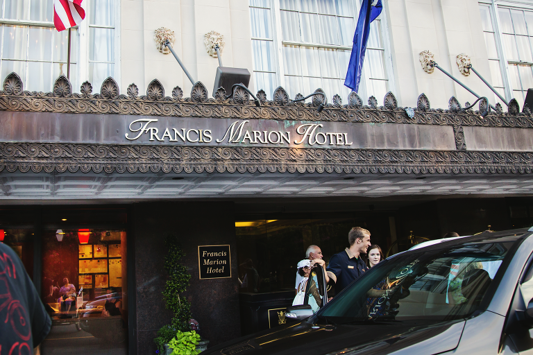 The room was a decent size, but the bathroom was super tiny. We didn’t expect a huge bathroom in a hotel built in the 1920s, so this wasn’t a big deal for us. The beds were super comfortable and the hotel was very clean. Overall, I would defiantly stay at the Francis Marion again! Later on in the blog I have more photographs of the hotel.