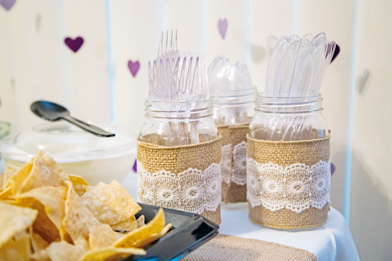 I’m so excited to share these photographs from Jessica’s bridal shower! As the maid of honor, I had the privilege of hosting this special day for my older sister. Being the artsy person I am, I was super excited to put all my arts and crafts skills to good use! From the door decor, chalk board count down, heart strings backdrop, favors, hand-sewn burlap sash, mason jars, to the cupcake toppers, I put my heart into everything that went into this day! We held the shower at our mothers home for an intimate feel. We set up a few tables and topped them with beautiful flower center pieces that were made by DeeDee (bridesmaid) and by special request from the bride, we catered in Chipotle for lunch.