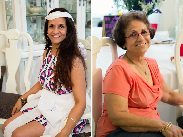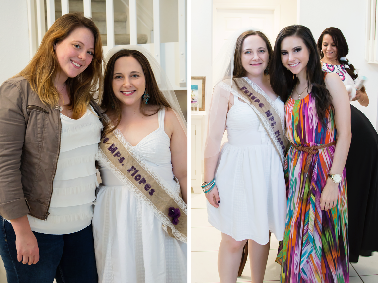 After lunch we began to play some traditional bridal shower games. My favorite was the toilet paper wedding dress game! I think it was pretty obvious who won that game. The next game I planned was a “help the bride write her vows” mad lib, which turned out great and pretty funny! Then the last game we played was our version of the “Newlywed game.” I had written up about 20 questions, either about the groom, bride or their relationship and asked the groom for his answers ahead of time. Jessica was to then answer the questions to match the grooms answers. All our guests went around and picked a number of correct answers they thought Jessica would match the grooms answers. Who ever guessed the right number, won a prize.sidebysidephotos4
