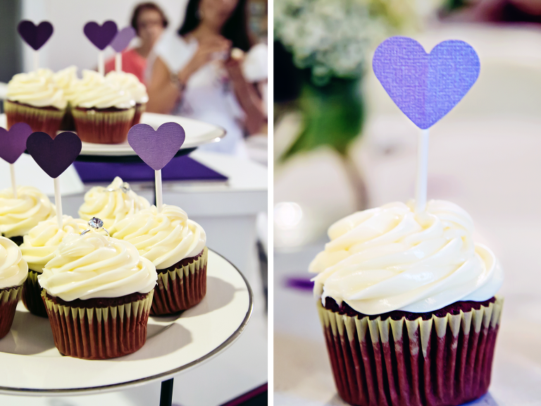 After the games, we indulged in some yummy red velvet cupcakes from “Gramma’s Bakery.” I added my own touch to the cupcakes by making the hearts on a stick and placing some plastic diamond rings on top. After dessert we all sat around and watched Jessica open up all her awesome gifts. Overall, the shower turned out amazing and everyone had a great time!