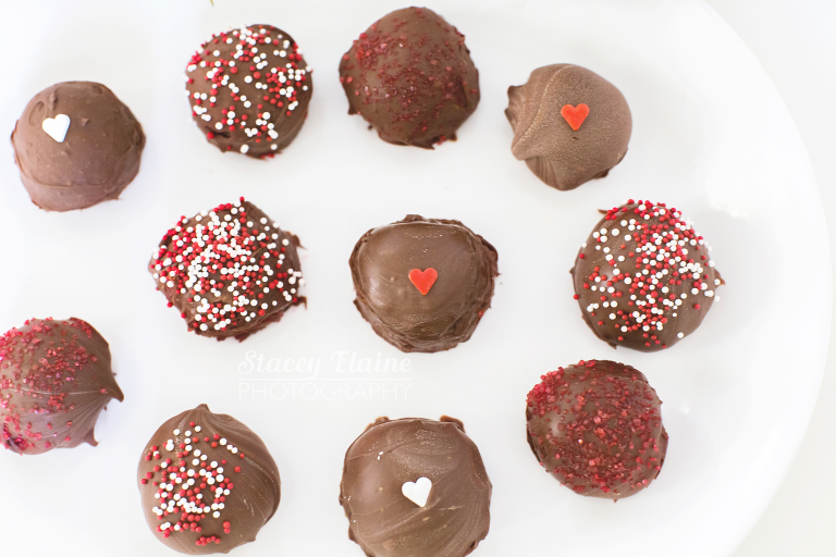 Happy Valentines Day Everyone! I hope you all had a wonderful holiday! For Valentines Day this year, I decided to bake some yummy treats for my valentine! As they say, “the way to a mans heart is through his stomach.” My Valentine loved these treats, as well as his roommates who scarfed them down within one day. My valentine loves rice krispie treats, so I decided to make him red velvet cake rice krispie treats with a homemade butter cream frosting, in heart shapes. I then made some red velvet cake balls with sprinkles. As a photographer of course I had to photograph them! Here are some of the photos as well as the recipes if you are interested in giving them a try! They both came out amazing! Enjoy!